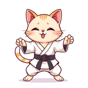 This funny mug features a cat practicing karate poses with a happy wagging tail. Perfect for a spirited start to your day.